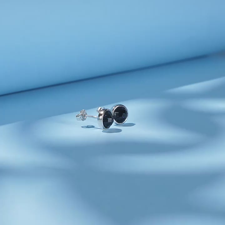 Discover the quiet elegance of the night sky with the Lavendy Midnight Galaxy Round Stud Earrings. Designed in a classic round silhouette, each earring features a faceted midnight-blue stone infused with subtle shimmering specks—resembling twinkling stars floating in a deep galaxy.