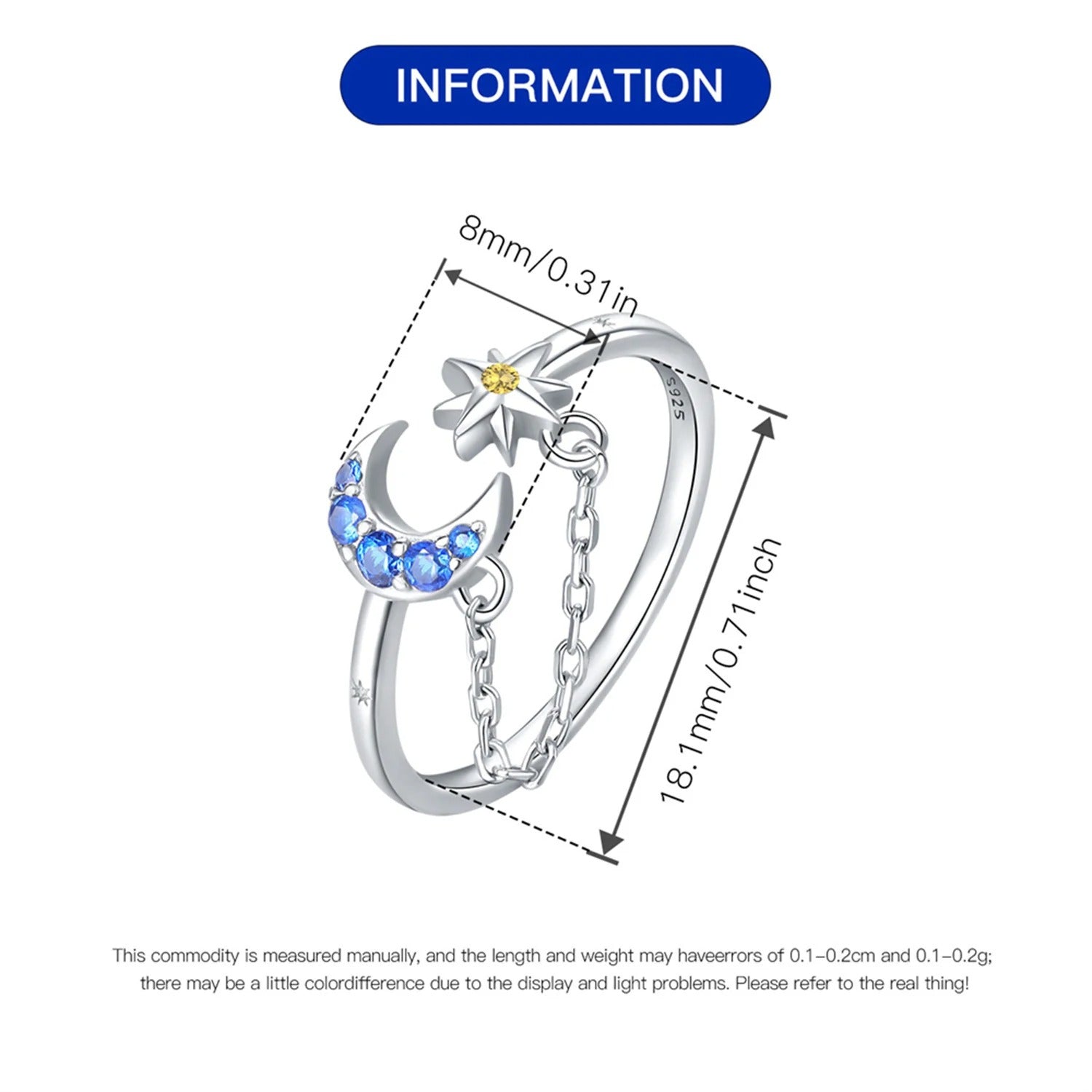 Star Moon Tassel Opening Ring